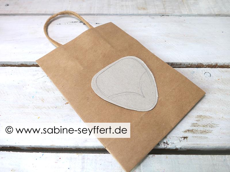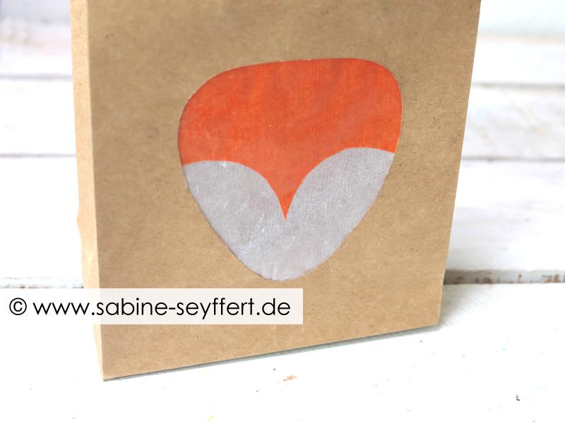 Alternativ könnt ihr euch den Fuchskopf auch einfach mit Bleistift auf der Tüte vorzeichnen und ggf. nochmal wegradieren, falls die Form euch nicht 100% zusagt.